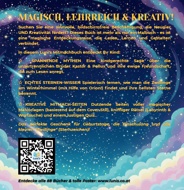 Das Buch "Die Zwillinge" aus der Sternen-Entdecker-Reihe ist die perfekte Kombination aus Lesen, Lernen und Malen. Es nimmt Ihr Kind mit auf eine Reise zu seinem ganz persönlichen Sternzeichen.